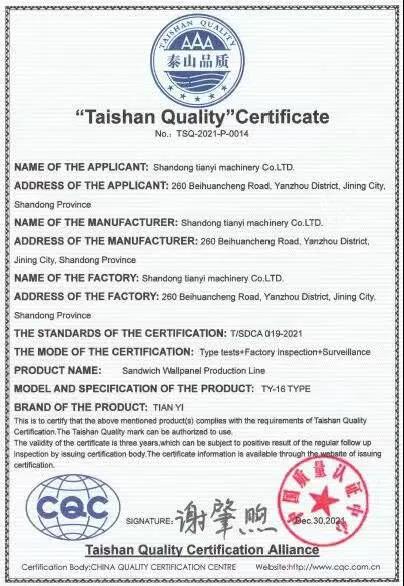 下一步天意機械將根據(jù)行業(yè)發(fā)展導向,堅持改革創(chuàng)新,持續(xù)提升企業(yè)智能制造水平,引導企業(yè)向著品牌高端化扎實邁進。天意機械多次獲得國家級榮譽、省級知名品牌、優(yōu)質品牌、省高端品牌培育企業(yè)等榮譽,此次天意機械獲得“泰山品質”產品認證證書,將更有利于企業(yè)品牌價值的提升和高品質形象的塑造,有利于提升企業(yè)的市場競爭力。