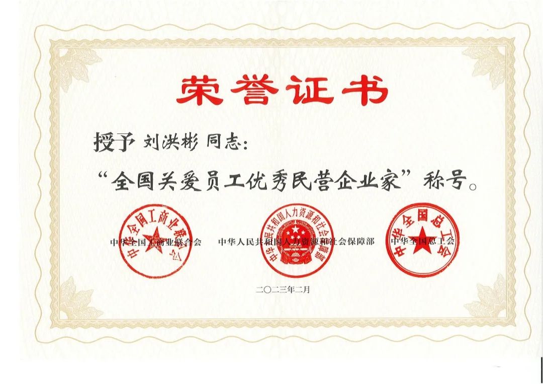 劉洪彬董事長(zhǎng)在山東分會(huì)場(chǎng)參會(huì)并受到表彰,獲得全國(guó)關(guān)愛(ài)員工優(yōu)秀民營(yíng)企業(yè)家稱號(hào)。
