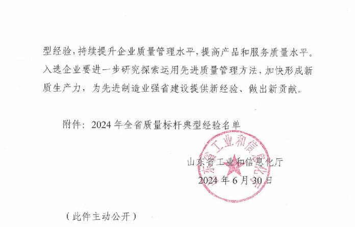 全省質量標桿是由山東省工信廳主導,山東省質量協(xié)會組織評選的省級榮譽,旨在強化提升企業(yè)質量管理水平,推動培育和建設產品卓越、品牌卓越、創(chuàng)新領先、治理現(xiàn)代、具有核心競爭力的一流企業(yè),代表各行業(yè)、各領域的優(yōu)秀質量示范。2024年主要聚焦質量管理體系升級、關鍵過程質量控制、產業(yè)鏈供應鏈韌性與安全和質量管理數(shù)字化進行遴選。