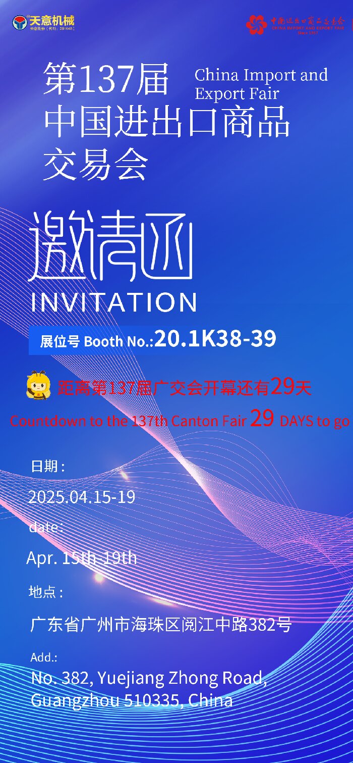 天意機(jī)械蓄勢(shì)待發(fā)!第137屆廣交會(huì)誠(chéng)邀全球伙伴共赴智造未來(lái)