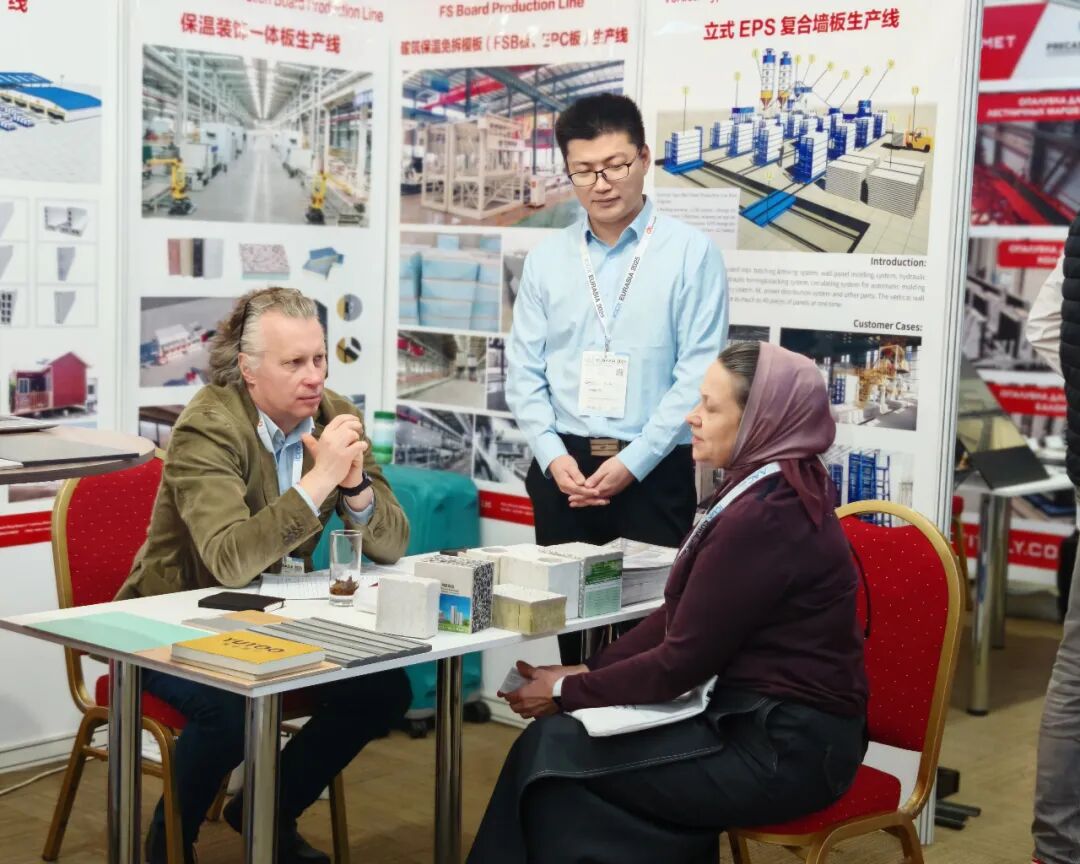 在裝配式建筑裝備方面,天意集團展示了PC生產(chǎn)線、墻板裝備和保溫裝飾一體板生產(chǎn)線。PC生產(chǎn)線自動化流程設計,減少人工依賴,契合當?shù)貏趧恿寄芩讲灰坏默F(xiàn)狀,有助于提升施工穩(wěn)定性;墻板裝備實現(xiàn)工業(yè)廢渣再利用,降低建材成本,符合環(huán)保政策要求;保溫裝飾一體板生產(chǎn)線可生產(chǎn)集多種功能于一體的新型墻體材料,采用模塊化設計,能根據(jù)客戶需求靈活配置不同飾面工藝,滿足中亞地區(qū)多樣化建筑風格需求。