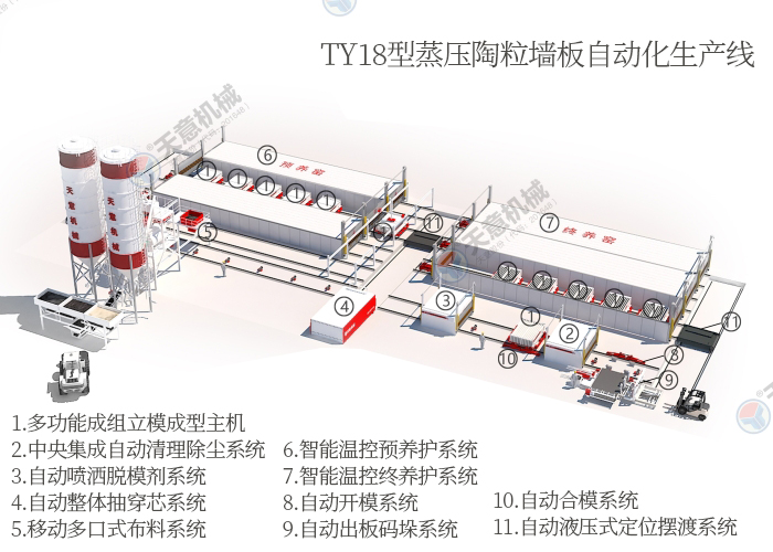 近年來,混凝土空心墻板發(fā)展迅速,究其原因是其原材料水泥和粗細(xì)骨料易于購買,生產(chǎn)效率高能夠?qū)崿F(xiàn)半機(jī)械化或者機(jī)械化生產(chǎn)等因素。其中陶?;炷翍?yīng)用于輕質(zhì)隔墻板中,能夠進(jìn)一步提高輕質(zhì)隔墻板的性能,因此在天意機(jī)械的客戶中生產(chǎn)陶粒墻板的客戶也是越來越多,下面主要為大家介紹一下陶粒混凝土墻板的配方比例及墻板機(jī)生產(chǎn)工藝。