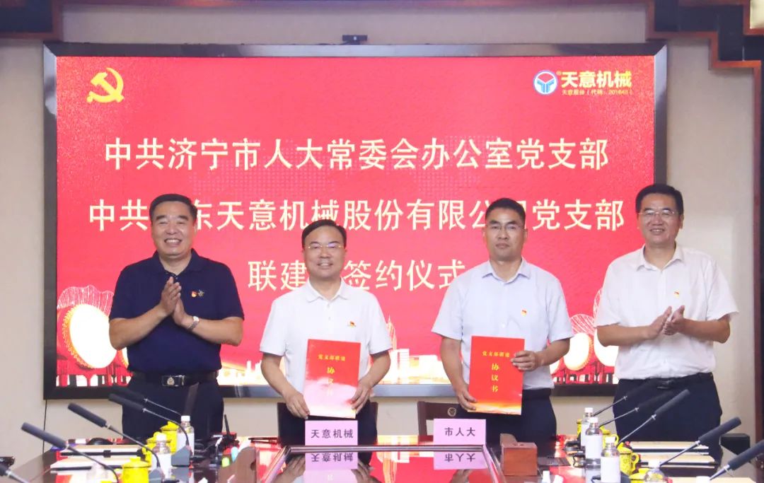 7月26日,中共濟寧市人大常委會辦公室黨支部與中共山東天意機械股份有限公司黨支部舉行聯(lián)建暨簽約儀式,雙方進一步加強基層黨組織建設(shè),推動雙方黨組織協(xié)同發(fā)展,構(gòu)建結(jié)對幫帶、雙向促進、共同提高的基層黨建格局。