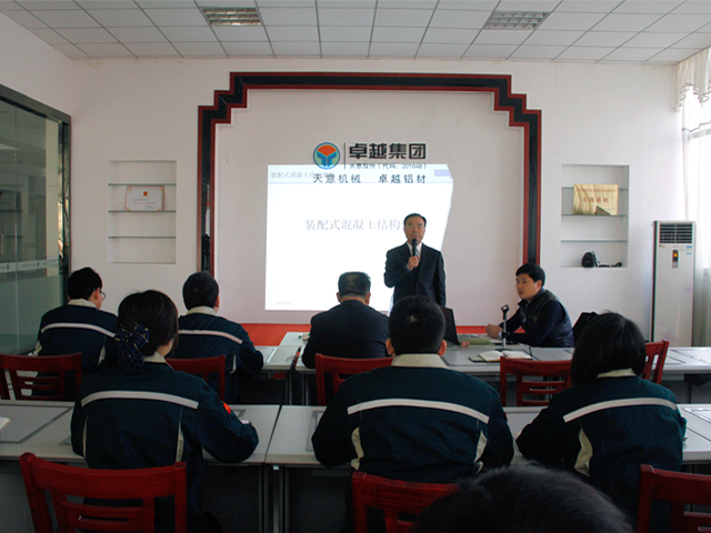 會議開始,山東天意機械股份有限公司董事長劉洪彬宣布開幕并致辭,劉董事長表示國家大力推行的裝配式建筑的遠大美好愿景,1終還是靠產(chǎn)品技術(shù)的創(chuàng)新和員工素質(zhì)技能的提高來實現(xiàn),需對當(dāng)前裝配式建筑部品進行統(tǒng)一和升級,從各環(huán)節(jié)入手,保障產(chǎn)品質(zhì)量,為裝配式建筑PC項目的順利快速推廣鋪開道路。
