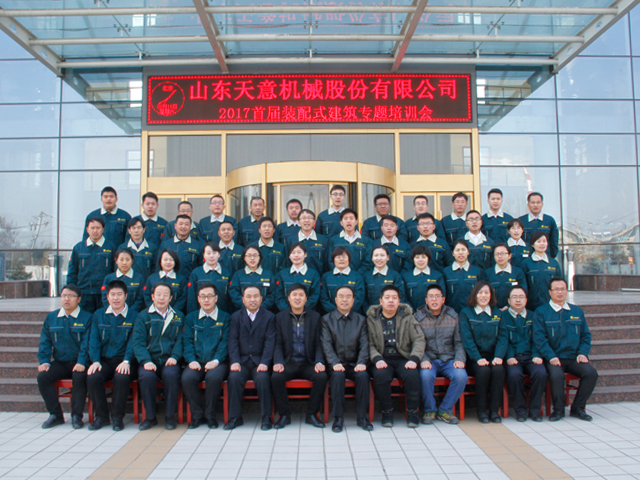 2017年2月11日,在元宵佳節(jié)這個特殊的節(jié)日里,山東天意機械股份有限公司舉辦“2017年首屆裝配式建筑專題培訓(xùn)會”。會議在天意機械技術(shù)研發(fā)中心一樓多媒體電教室成功舉行。出席本次會議的有山東天意機械股份有限公司董事長劉洪彬、副總經(jīng)理劉其華、生產(chǎn)總監(jiān)秦憲軍、戰(zhàn)略項目部部長孫為民、銷售總監(jiān)郭川東以及生產(chǎn)、銷售、售后服務(wù)團隊100余人參加會議。本次會議也邀請了在裝配式建筑設(shè)計、建設(shè)領(lǐng)域有豐富實踐經(jīng)驗的項目負責(zé)人和行業(yè)專家參見本次會議。