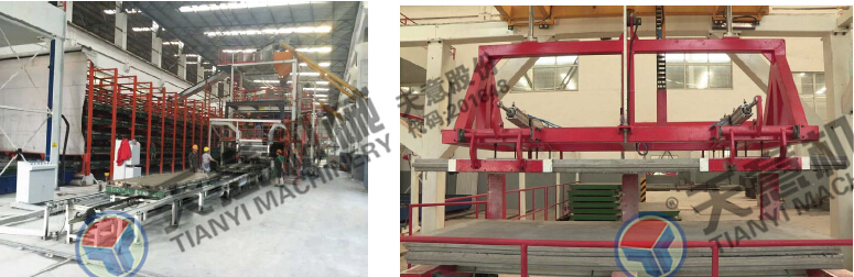多功能墻板生產(chǎn)線(xiàn),可生產(chǎn)“三明治”夾芯板,鋼邊框屋面板、樓面板,不帶面板復(fù)合板。生產(chǎn)線(xiàn)主要分為自動(dòng)配料系統(tǒng)、攪拌系統(tǒng)、發(fā)泡系統(tǒng)、中央控制配電系統(tǒng)、輕質(zhì)混凝土布料系統(tǒng)、磨光系統(tǒng)、模具循環(huán)系統(tǒng)、養(yǎng)護(hù)系統(tǒng)、碼垛系統(tǒng)等部分組成。