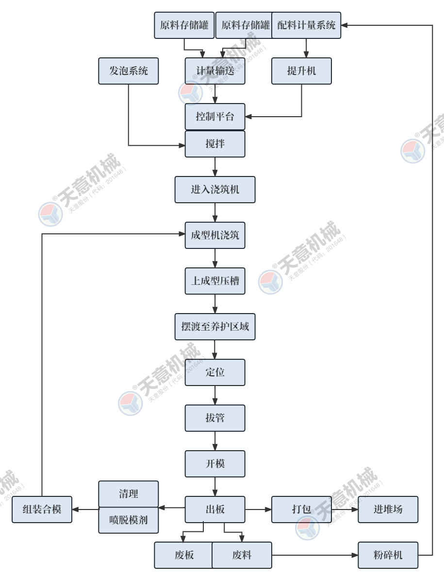 6.成組立模法生產(chǎn),攪拌灌漿成型,采用機(jī)組流水工藝,自動化程度高。